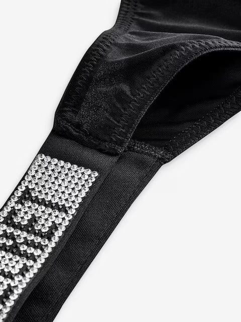 Discover a sexy, silky knickers with a flattering, high-cut leg and our famous monogram logo shine straps for a dazzling finish. Low rise. High-cut leg. Rhinestone logo shine straps. Minimal back coverage: lots of cheek peek. Cotton gusset panel. Partially made from recycled materials